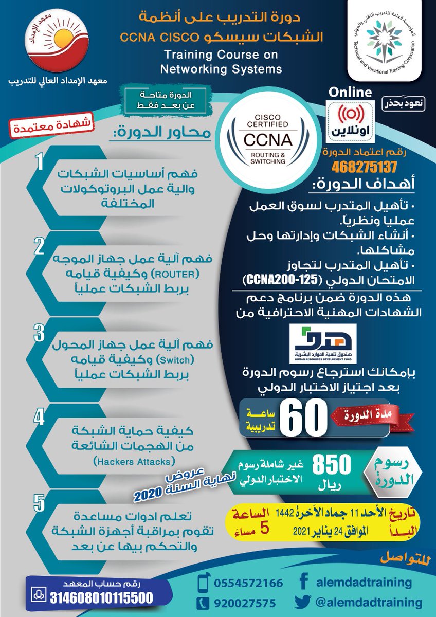 معهد الإمــداد العــالي للتدريب On Twitter بدء التسجيل لدبلوم شبكات الحاسب ودبلوم الإدارة المكتبية أسعار منافسة ستبدء الدراسة الأحد 1442 01 11 الدبلومات تعادل الشهادة الجامعية المتوسطة من الكليات التقنية ومصنفة في الخدمة المدنية