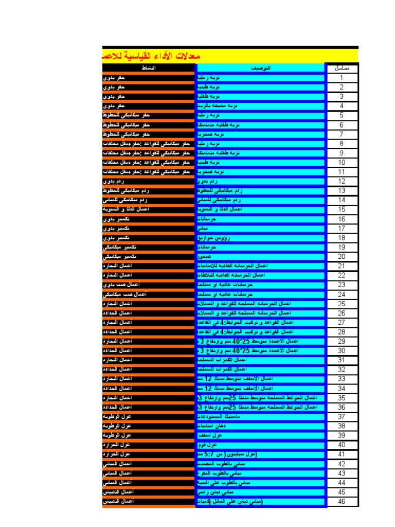معدلات الاداء الانتاجية للاعمال المدنية Pdf