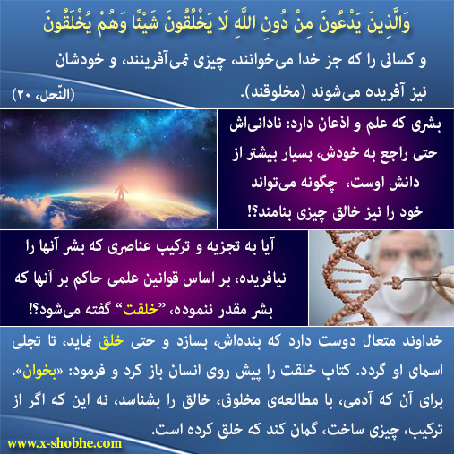 پاسخ به شبهه یک آیه از قرآن است که می فرماید کسانی که غیر از خدا می خوانید نمی توانند یک مگس خلق کنند آیا این آیه با علم امروزی بشر مثل شبیه سازی
