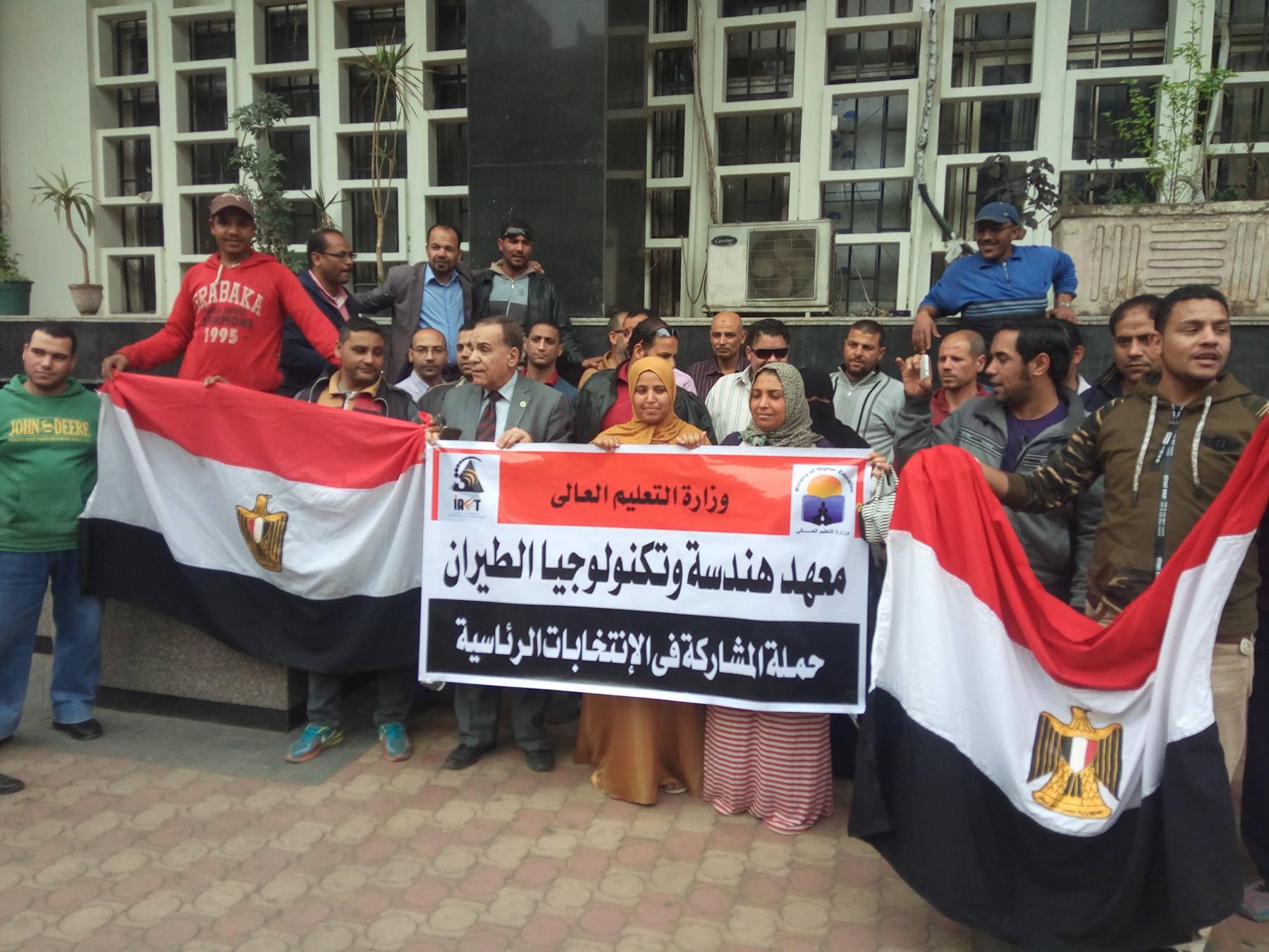 العاملين بمعهد هندسة وتكنولوجيا الطيران الجيزة أمام التعليم العالي لحث المواطنين على المشاركة في الانتخابات جريدة الديوان