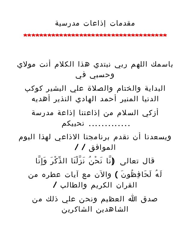مقدمة اذاعة مدرسية قصيرة