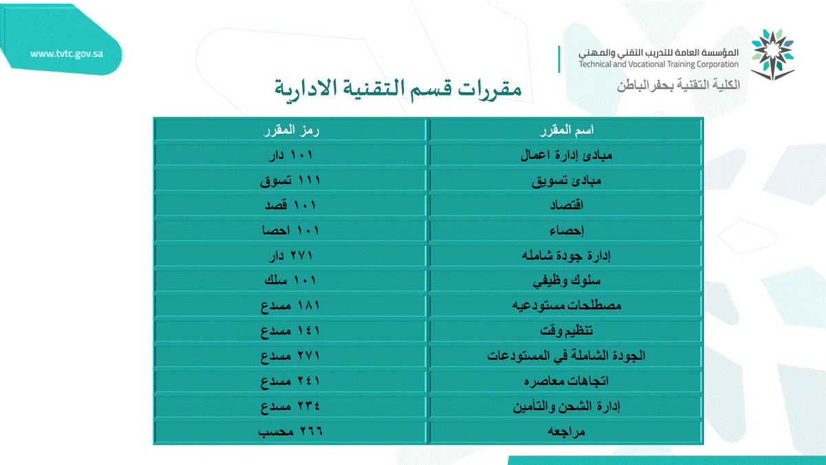 الكلية التقنية للبنين بحفر الباطن On Twitter المقررات المطروحة للفصل التدريبي الصيفي ١٤٤٠ ١٤٤١هـ لـ الكلية التقنية بحفرالباطن