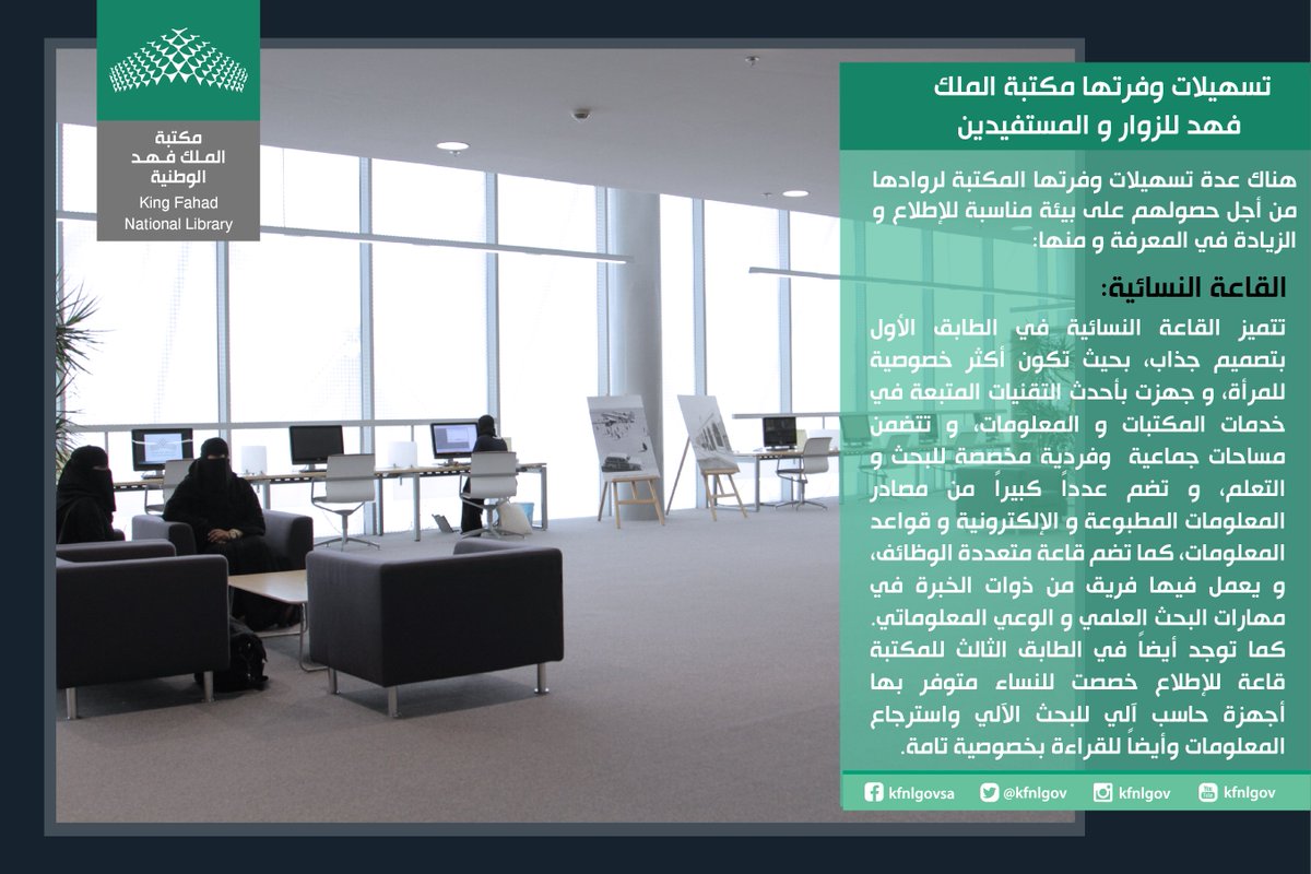 مكتبة الملك فهد الوطنية Pa Twitter القاعة النسائية مساعدة الباحثات للقيام بمهام البحث في فهرس المكتبة وقواعد المعلومات مكتبة الملك فهد الوطنية