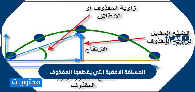 المسافة الافقية التي يقطعها المقذوف موقع محتويات