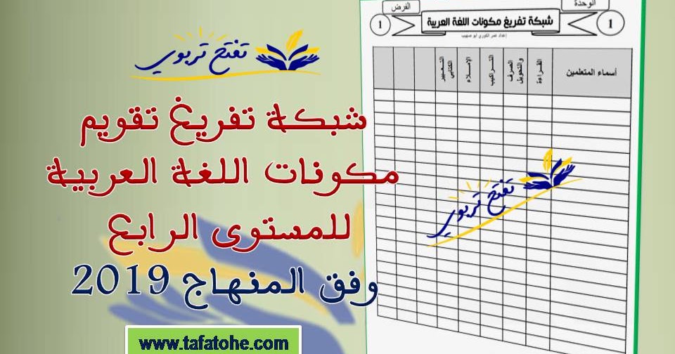 شبكة تفريغ تقويم مكونات اللغة العربية للمستوى الرابع وفق المنهاج 2109