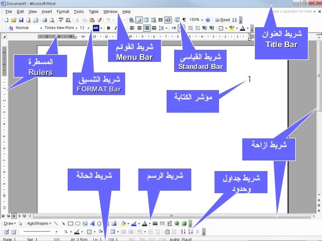 الحاسب الالى مكونات الشاشة الافتتاحية برنامجmicrosoft Office Word