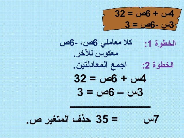 درس حل نظام من معادلتين بالحذف باستعمال الجمع أو الطرح للصف الثالث المتوسط بستان السعودية