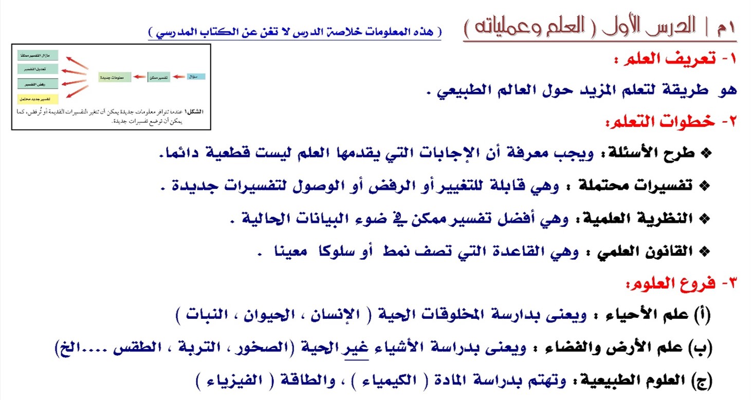 ملخص مادة العلوم للصف الاول المتوسط على مدارس الرسول الاكرم ص الاساسية الاهلية المتوسطة للبنين Facebook
