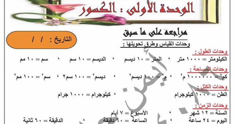 مذكرة رياضيات للصف الخامس الابتدائي ترم أول 2020