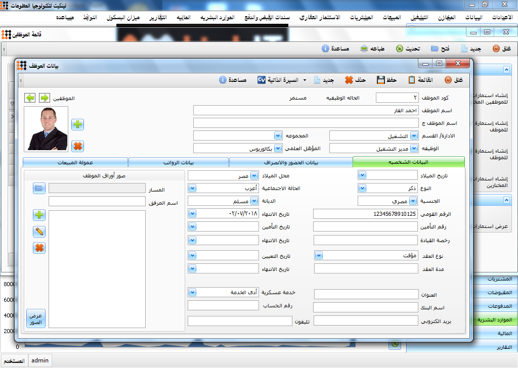 برنامج ادارة الموارد البشرية ادارة ملفات الموظفين والسلف وحساب الرواتب