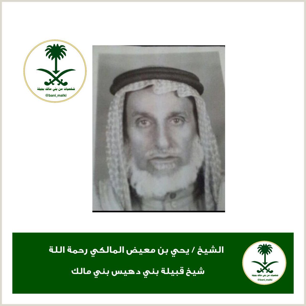 شخصيات بني مالك على تويتر شخصيات بني مالك الشيخ يحيى بن معيض المالكي رحمه الله شيخ قبيلة بني دهيس من بني مالك