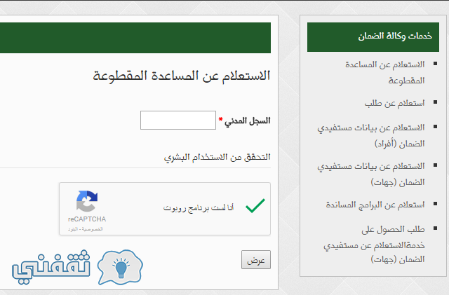 رابط الاستعلام المساعدة المقطوعة بالسجل المدني الاستعلام عن رصيد الضمان الاجتماعي 1438 ثقفني