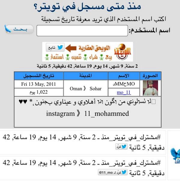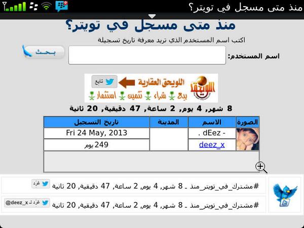 موقع عربى لمعرفة عمر اى حساب على تويتر بالثانية والدقيقة والساعة
