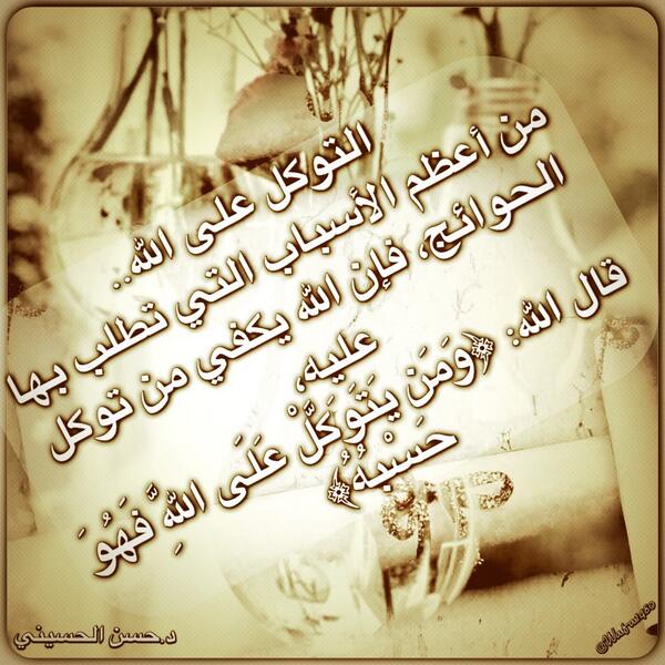 د حسن الحسيني Auf Twitter التوكل على الله من أعظم الأسباب التي تطلب بها الحوائج فإن الله يكفي من توكل عليه قال الله ومن يتوكل على الله فهو حسبه