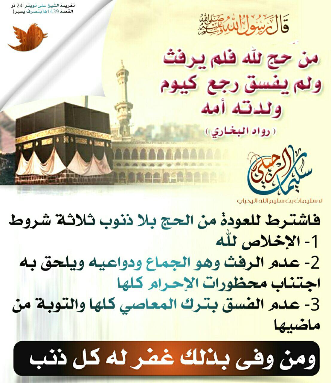 قول النبي صلى الله عليه وسلم. ما معنى قوله عليه الصلاة والسلام. زيد بن محمد الرماني. م ن ح ج فل م ي ر ف ث و لم ي ف س ق ر ج ع ك ي و م و ل د ت ه أ م ه.