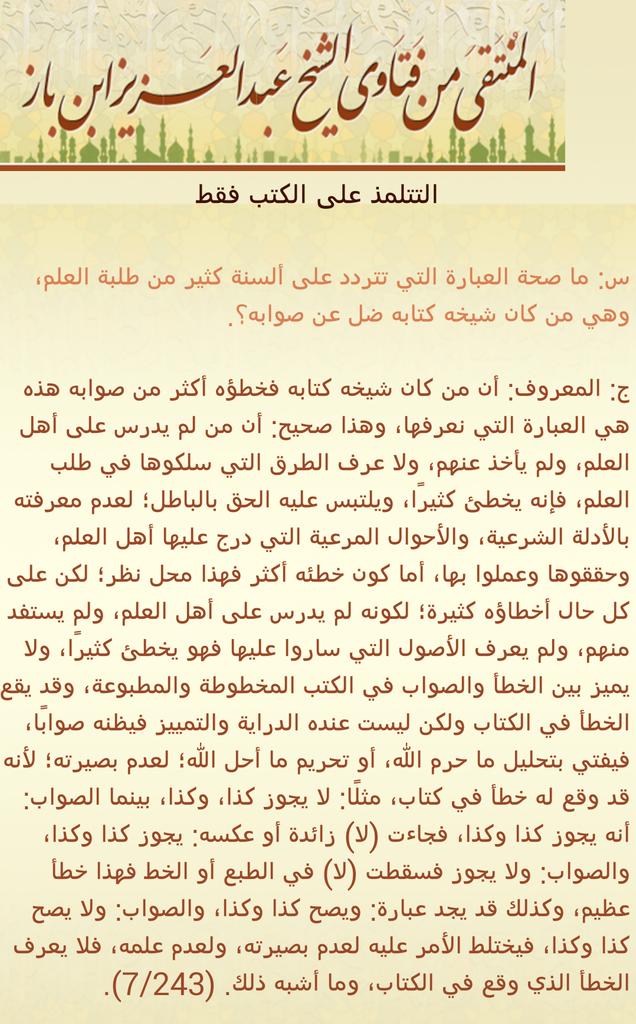 من كان شيخه كتابه فخطؤه أكثر من صوابه الشيخ صالح الفوزان