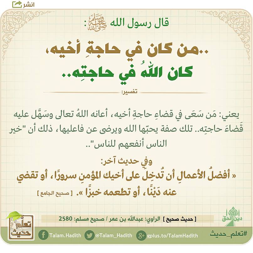 من كان في حاجة أخيه كان الله في حاجته Posts Facebook