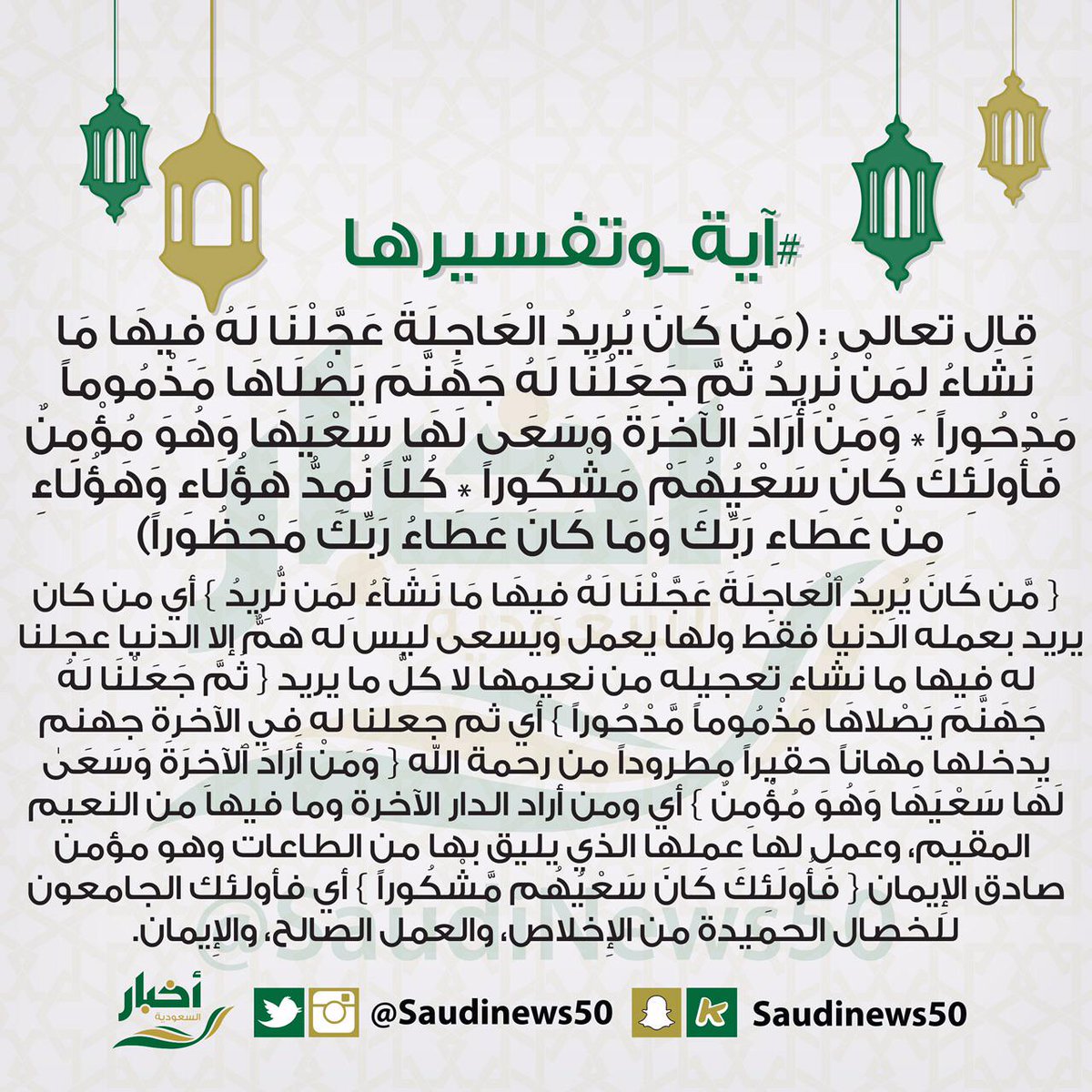 أخبار السعودية On Twitter آية وتفسيرها قال تعالى من كان يريد العاجلة عجلنا له فيها ما نشاء لمن نريد ثم جعلنا له جهنم يصلاها مذموما مدحورا Http T Co Yjxec7bc7l