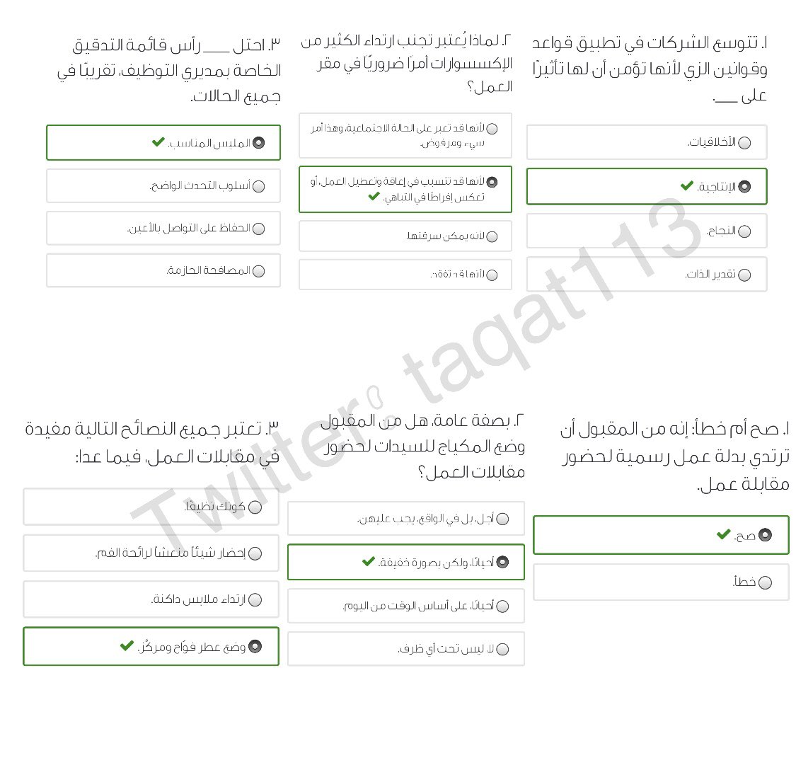 حل اسئلة دورات حافز On Twitter مهارات الاهتمام بالمظهر الشخصي والعادات الصحية ٣ المظهر الشخصي بمقر العمل حافز طاقات