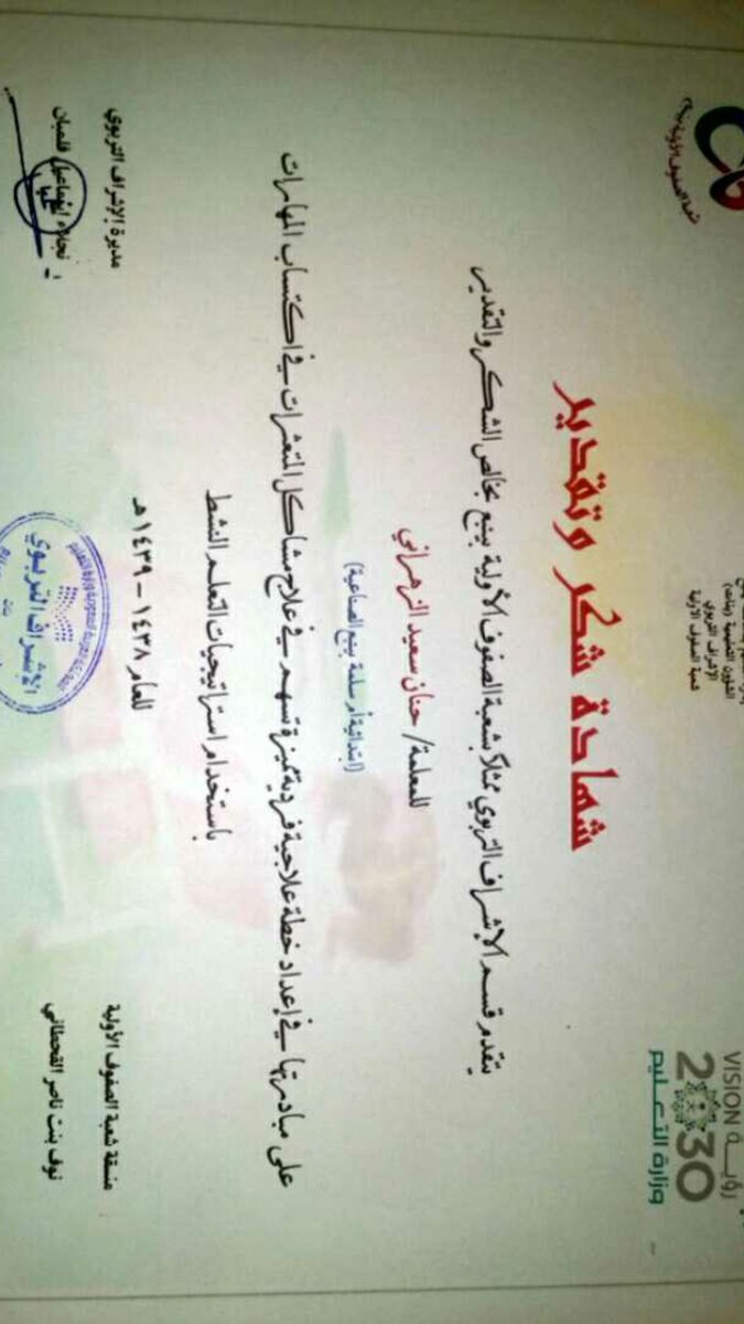 نوف القحطاني On Twitter تتقدم شعبة الصفوف الأولية بالشكر والتقدير لمعلمات الصفوف الأولية التالية أسمائهن نجية الرفاعي ب ت1 حنان الزهراني ب أم سلمة سلمى الشريف ب7ص وذلك لمبادرتهن