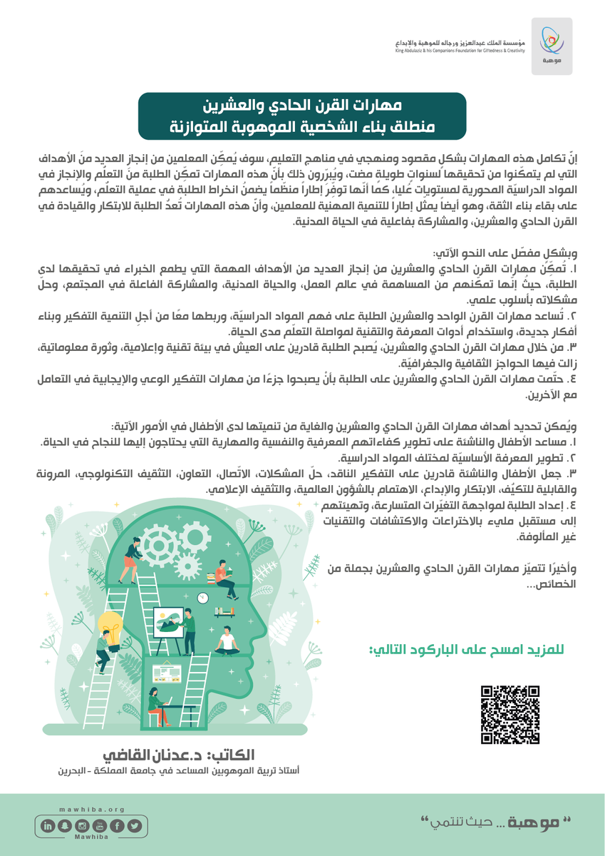 موهبة V Twitter تسهم مهارات القرن الحادي والعشرين في إعداد الطلبة للابتكار والقيادة والمشاركة بفاعلية في الحياة المدنية اقرأ مقال مهارات القرن الحادي والعشرين منطلق بناء الشخصية الموهوبة المتوازنة Https T Co Gly7mqyzhe موهبة Https T Co