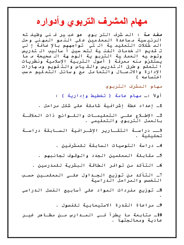 مهام مشرف التربية منقول من الجريدة الرسمية